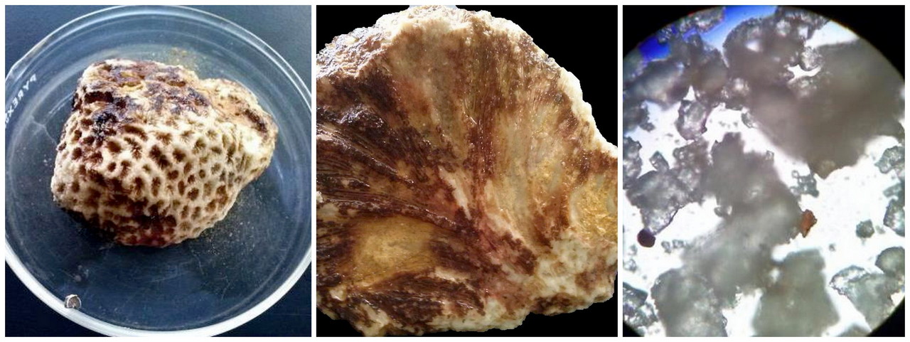 - Morphology: Tubular fragments of branching coral with visible coral polyp cavities