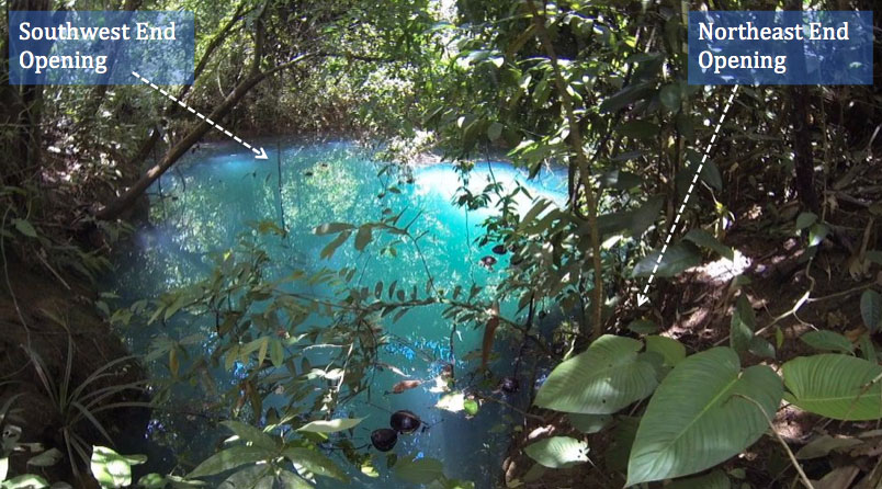 This makes Del Carmen Cenote #1 one unique cave diving destination. Not many places in the world are like this. The cenote is a 24/7 dive site, with many different options for diving depending on the purpose of the dive, using either opening. At proper tide timing this can either be a no-current dive or a spring dive with significant flow for pull-and-glide dive propulsion exercises.