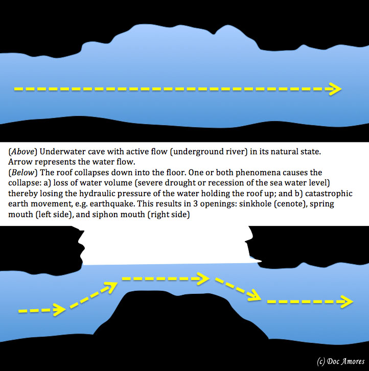 Figure 1 below represents a classic formation of a sinkhole in an underwater cave with a flow.