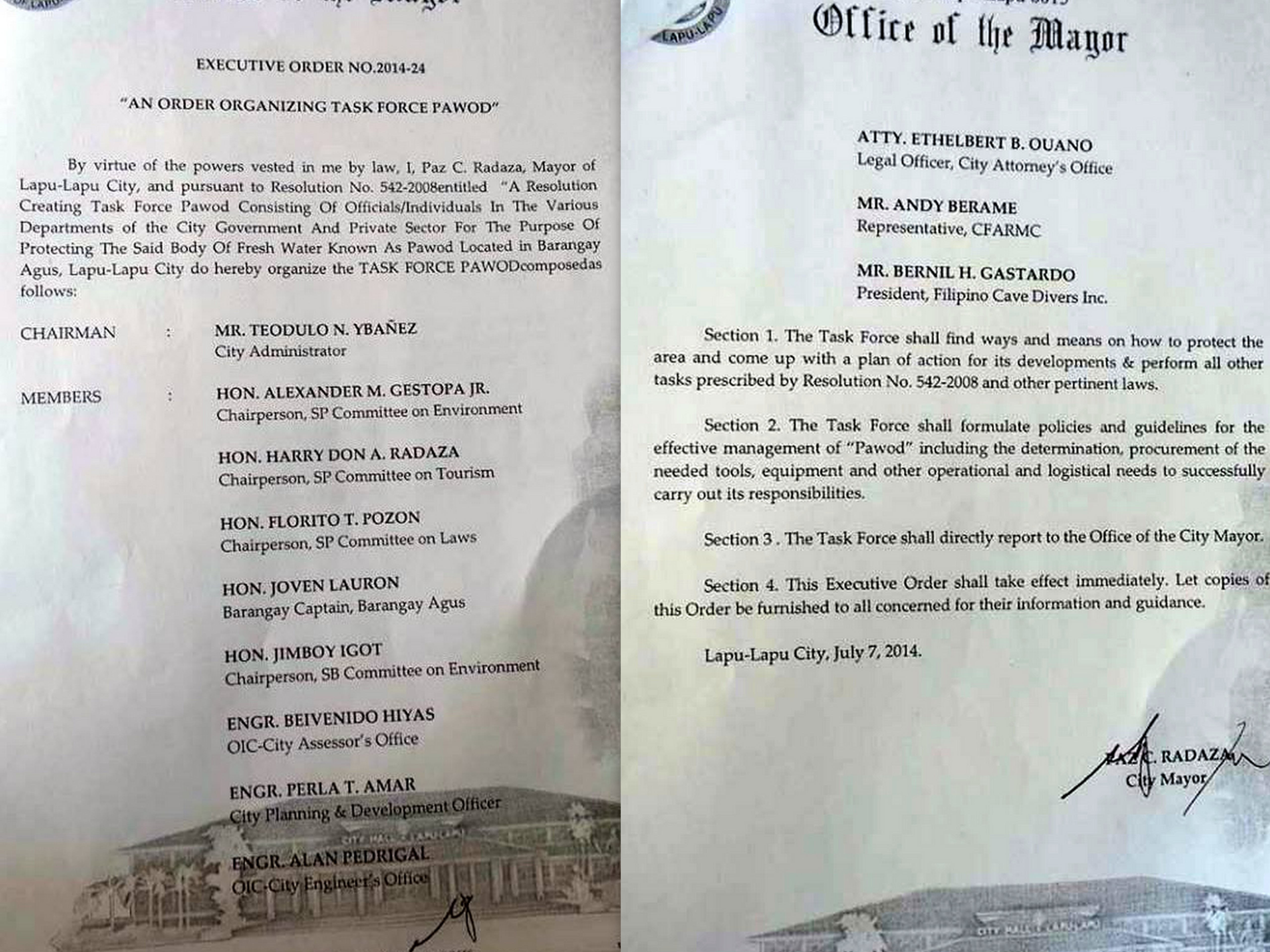 We have secured approval from the Mayor herself, Hon. Paz Radaza, to undertake this project. Through the Executive Order 2014-24 which is “An Order Organizing Task Force Pawod”, she has pledged full support for future activities concerning the implementation of the project.