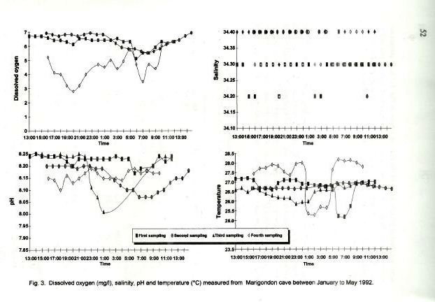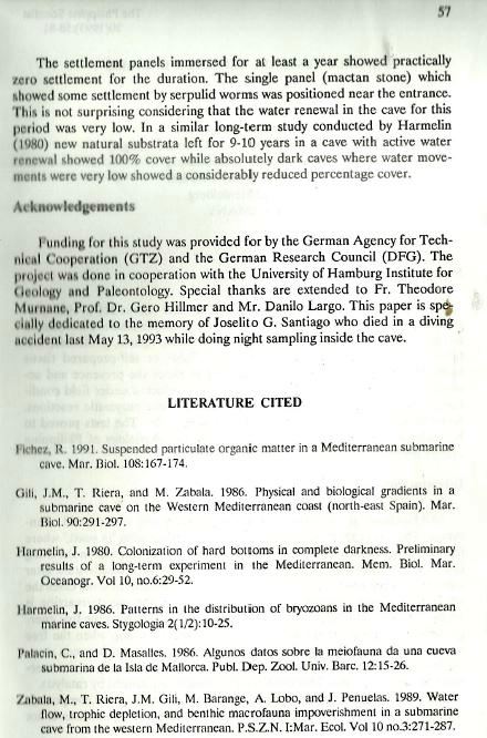 The 1993 scientific article was USC’s first contribution to the study of underwater caves. It was a collaborative effort between a marine geologist from the Univ. of Hamburg, Germany and researchers of the Marine Biology Section, USC. The article provided initial data on the dimension of the cave, the range of temperature, salinity, pH, dissolved oxygen & the meiofauna density inside the three sections of the cave.
