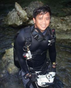 Jake was born and raised in Surigao City, Philippines. He went to high school at the Ateneo de Manila, and spent a couple of years in college in the same university before choosing a military education.As a cadet in the Philippine Military Academy he underwent Scuba training under the Philippine Navy’s Special Warfare Group. After graduating from the academy in 1999, he went on to serve in the Philippine Navy, diving under his ship when the opportunity presented itself.He has since moved back to the private sector, serving in various capacities such as president of the Surigao Chamber of Commerce and Industry, and representative of the Mindanao business sector at the Mindanao Development Authority. He has recently retired from both positions, and even declined an appointment as a top level official in government. He now serves as a government consultant for underwater search and recovery projects, and figured as a coordinator for the successful 2012 sonar search of the plane wreckage of the late DILG Sec. Jesse Robredo. Jake advocates the use of modern diving technology in government and military work, particularly in search and recovery.His first cave dive was in Silop Cave in Surigao City where he was almost lost in a new chamber with his buddy. Thereafter, he pursued cave training to become a certified full cave diver.Jake Miranda, aside from being a hotelier and an entrepreneur, is now a fulltime SDI/TDI diving instructor and cave diver. He operates Punta Bilar Dive Center in Surigao City, and JJ Dive Center in Butuan City. He is married and has four children.